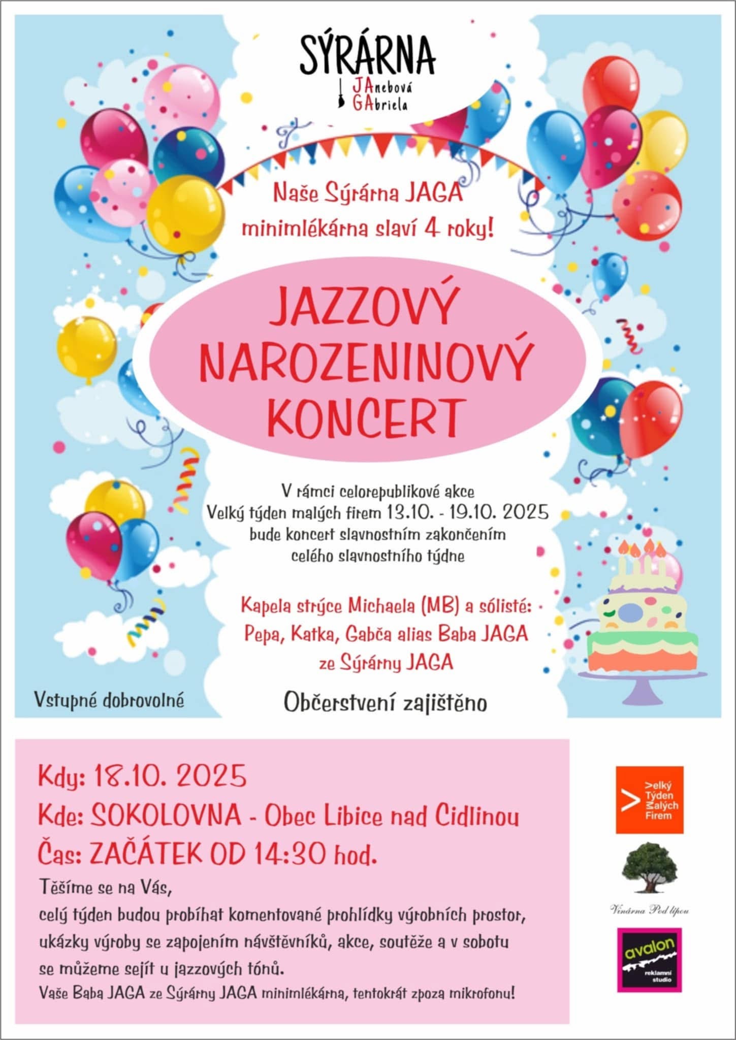 V sobotu 18.10. od 14:30 hod můžete v Sokolovně v Libici n. C. společně se sýrárnou JAGA oslavit její 4. narozeniny jazzovým koncertem.